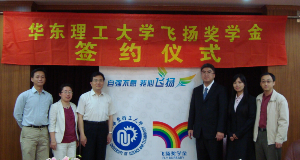 2009年5月13日,飞扬奖学金签约仪式在华东理工大学逸夫楼第一会议室举行。上海浦景化工技术有限公司总经理诸慎先生和华东理工大学校党委副书记沈炜老师等出席了签约仪式,并共同签署协议书。